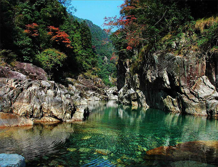 黄兰溪峡谷谷地狭窄,峭壁如削。峡谷两侧险峰矗立,奇石嶙峋;峭崖之上,飞瀑直降,谷底潭深水清。深秋时节,层林尽染,是观赏峡谷的黄金时节。谷中林木茂盛,是鸟儿的天堂、猕猴的乐园。